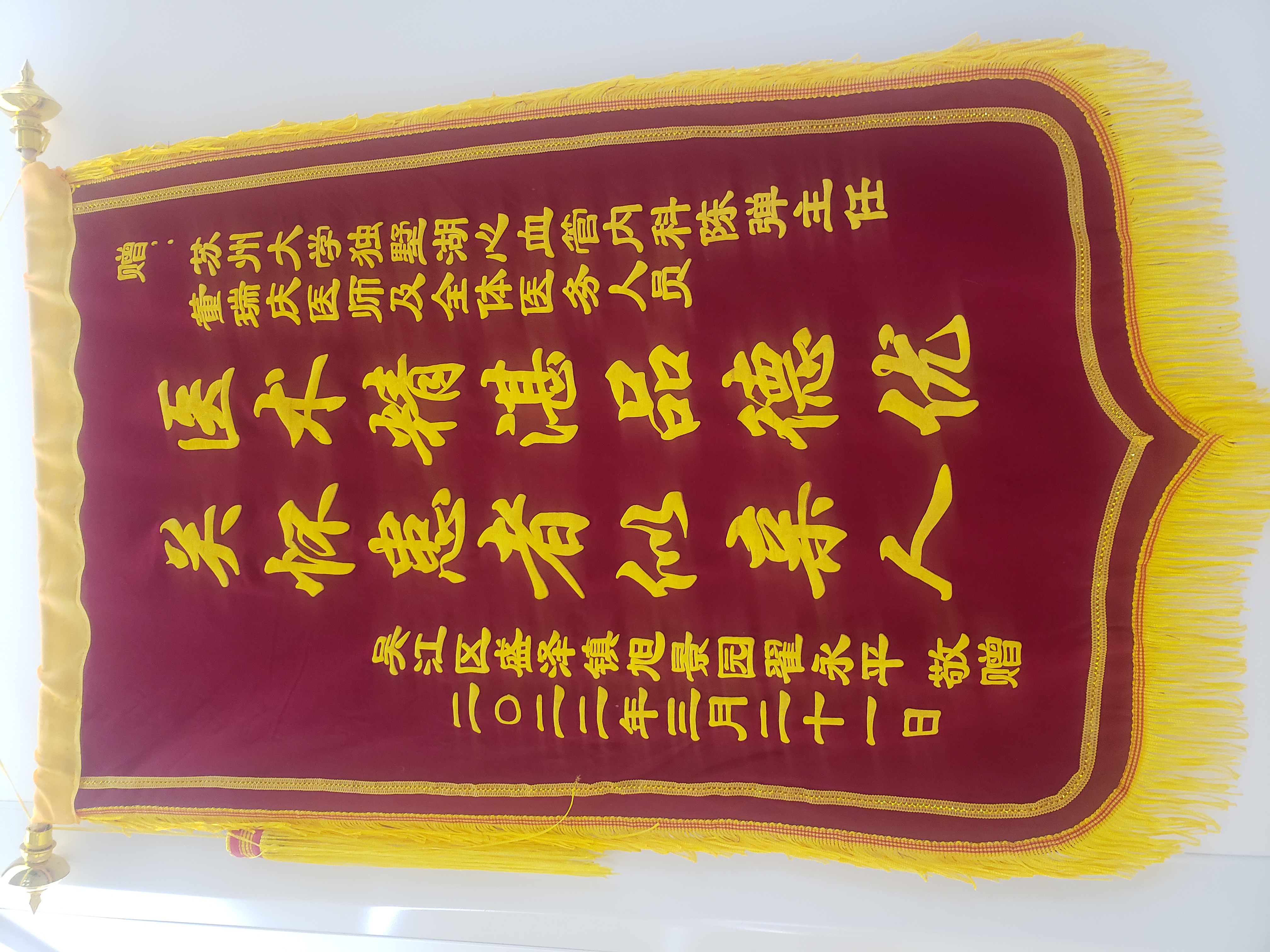 患者翟先生赠送锦旗感谢我院心血管内科陈弹主任医师、董瑞庆医生及全体医护