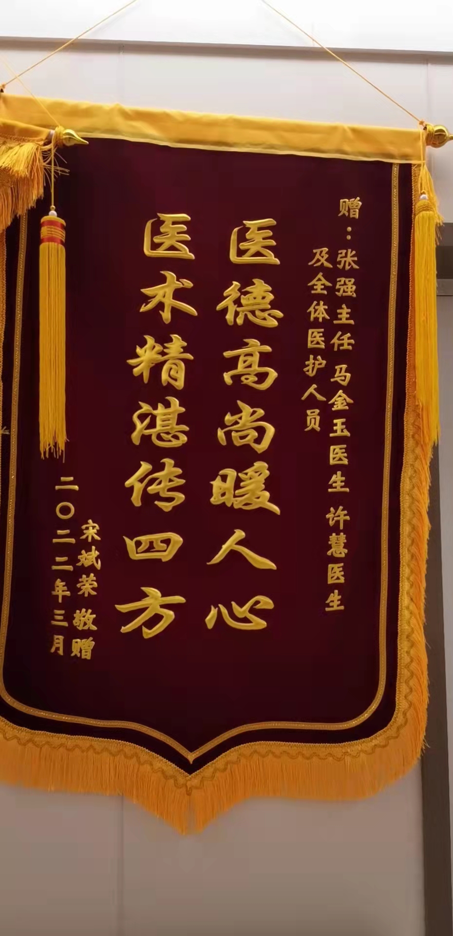 患者宋先生赠送锦旗感谢我院心血管内科张强主任医师、马金玉医生、许慧医生及全体医护
