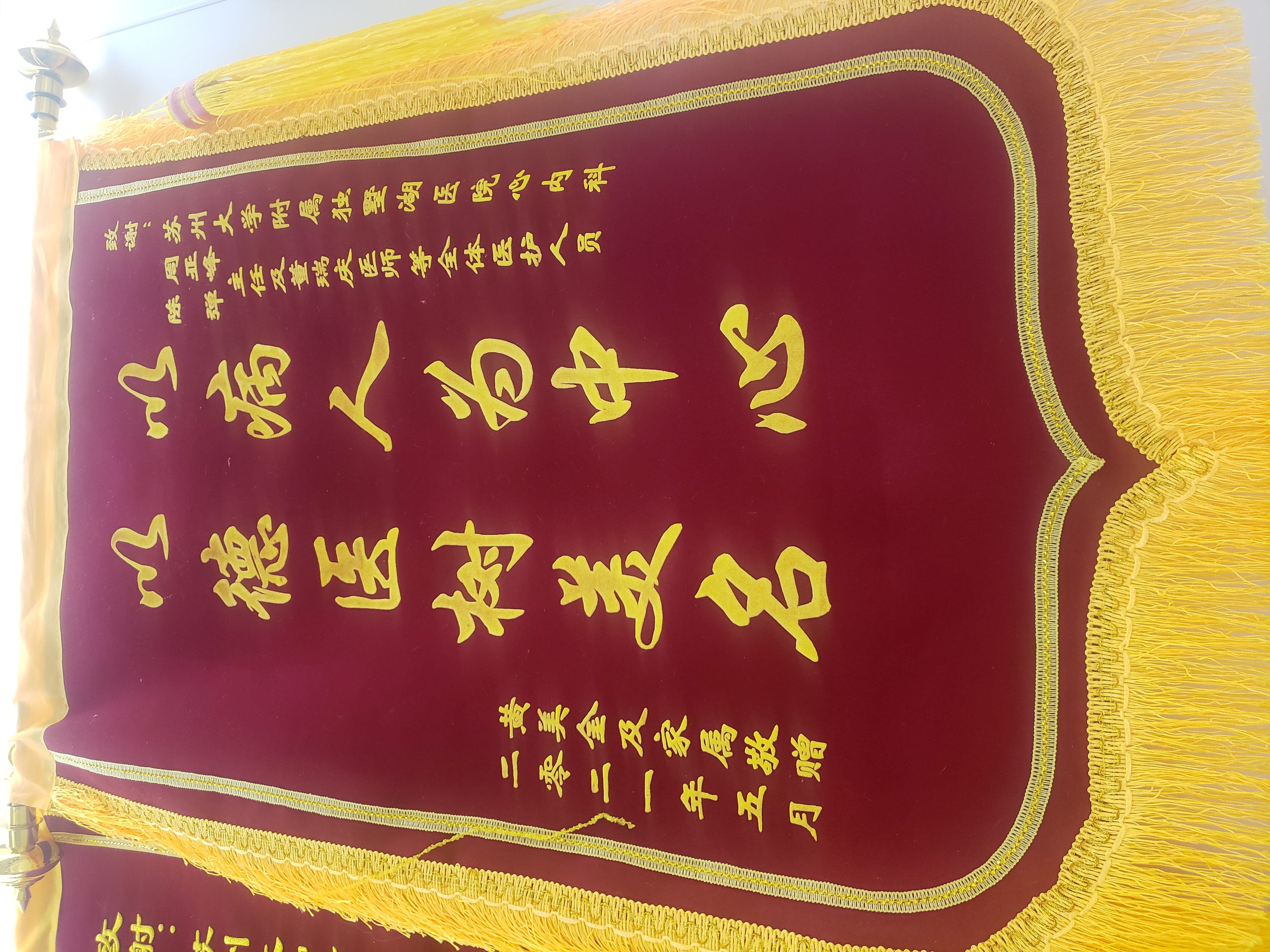 患者黄女士赠送锦旗感谢我院周亚峰副院长、心血管内科陈弹主任医师及全体医护