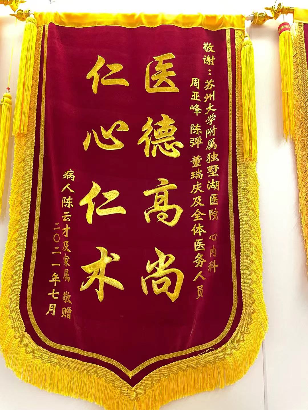 患者陈先生赠送锦旗感谢我院心内科周亚峰、陈弹、董瑞庆及全体医务人员