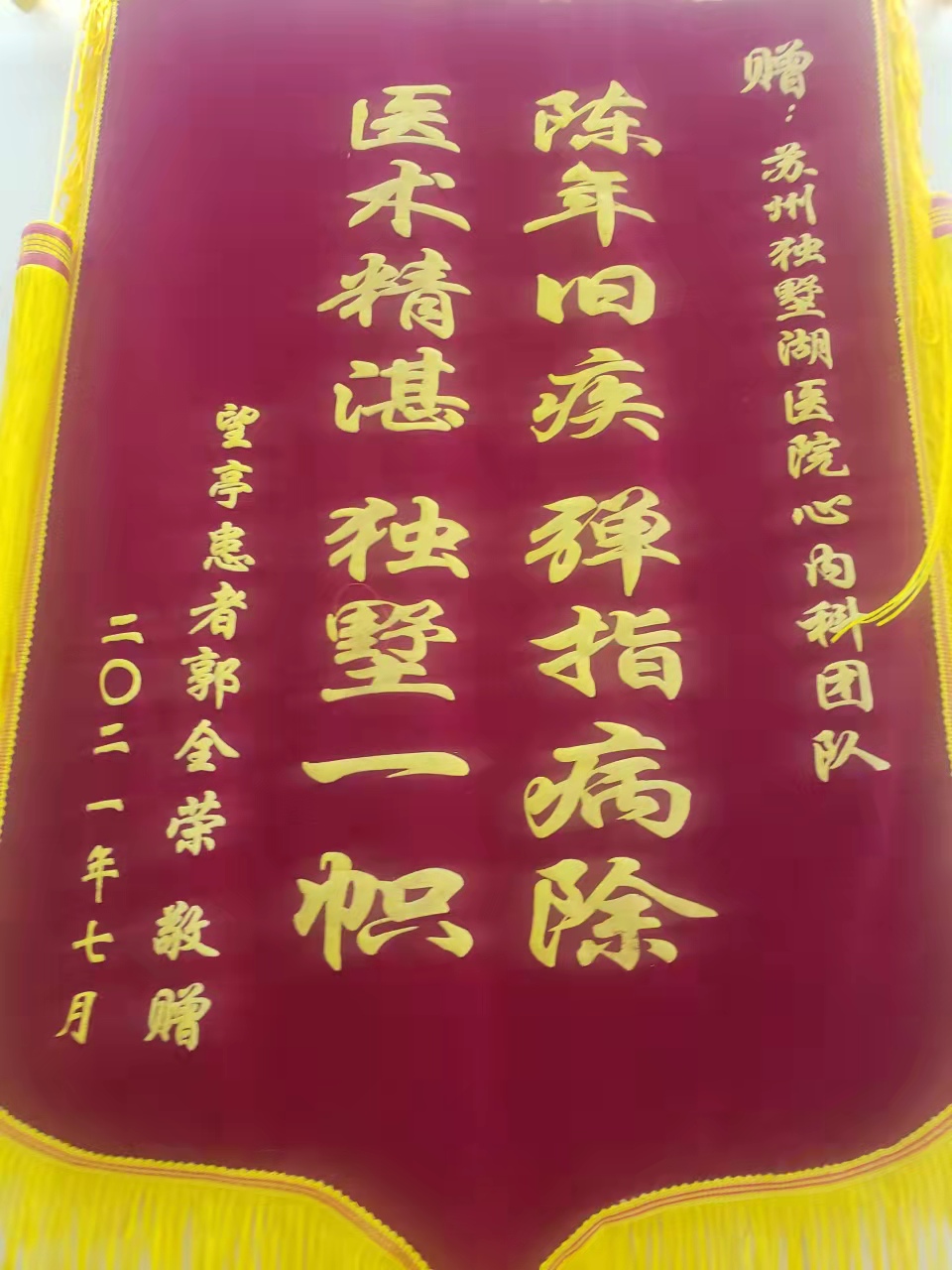 患者郭先生赠送锦旗感谢我院心内科团队