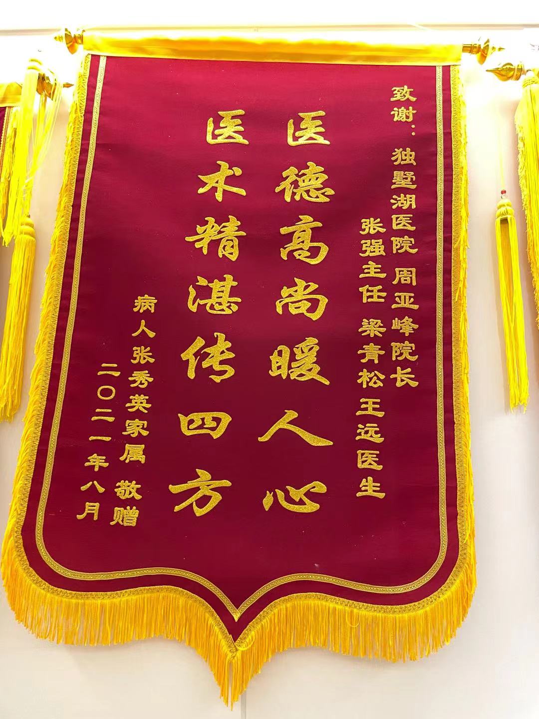 患者张女士赠送锦旗感谢我院周亚峰副院长、心血管内科张强主任医师、梁青松医生、王远医生