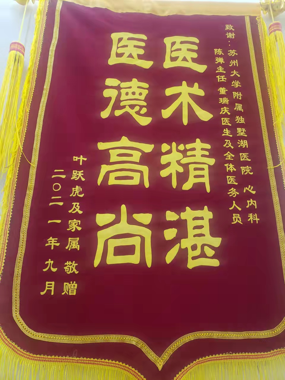 患者叶先生及家属赠送锦旗感谢我院心内科陈弹主任医师、董瑞庆医生及全体医护
