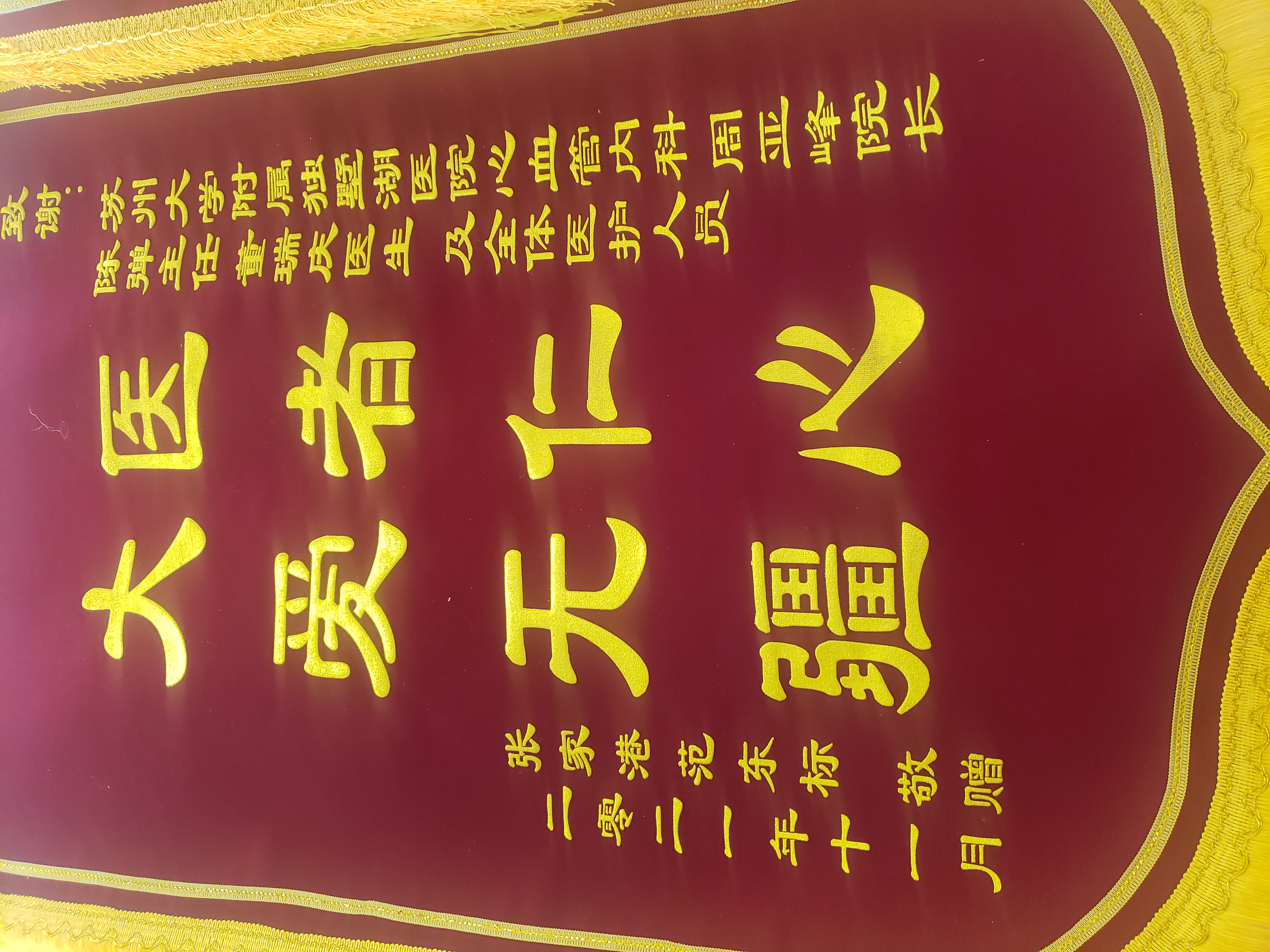 患者范先生赠送锦旗感谢我院周亚峰副院长、心血管内科陈弹主任医师、董瑞庆医生及全体医务人员