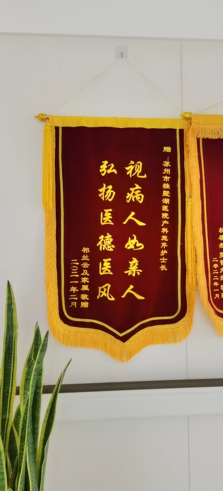 患者祁女士及家属赠送锦旗感谢我院妇产科施芹护士长
