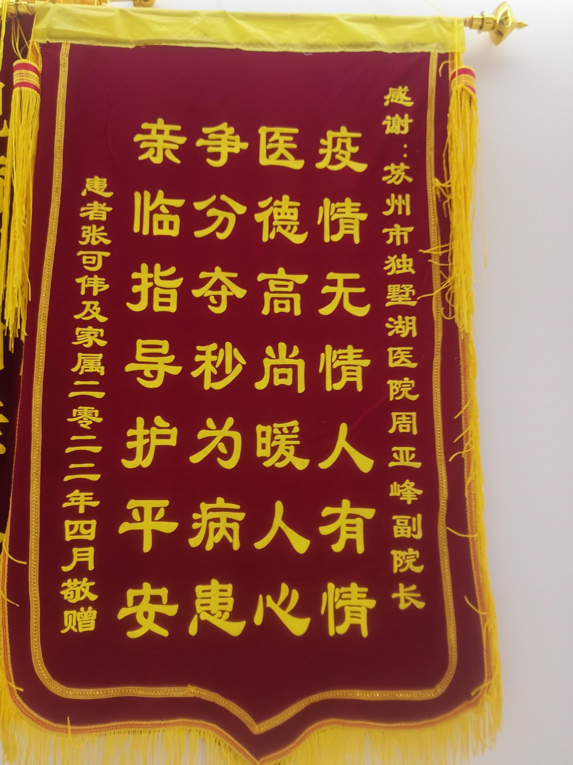 患者张先生赠送锦旗感谢我院周亚峰副院长
