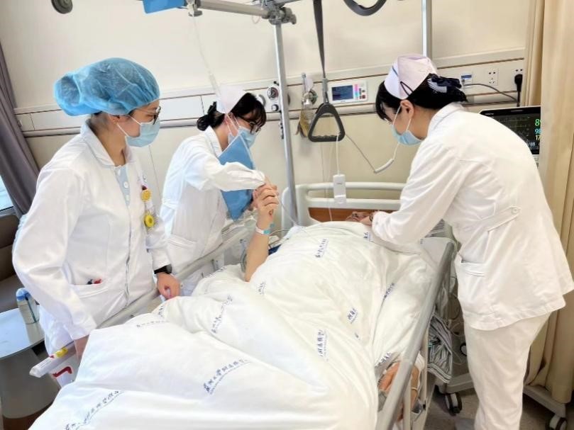 张霞芬护士长带领床位护士殷怡、张伊萌进行术后护理查房