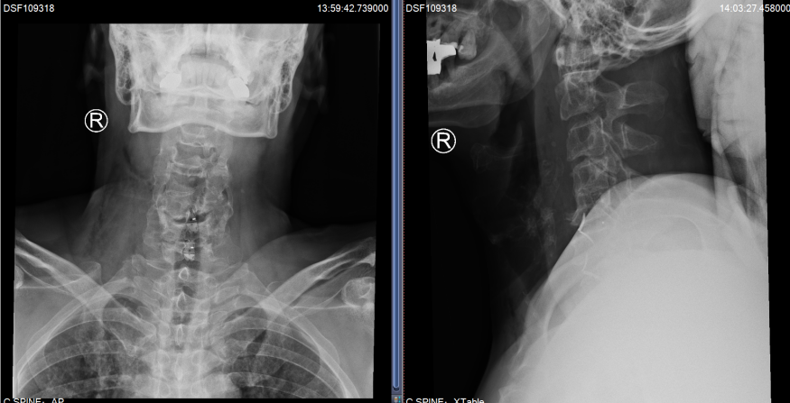 就这样,2022年3月,Hester办理了住院手续,在进一步的详细评估后,姜主任制定了经前路减压融合术的手术方案。与后路椎管扩大成型术相比较,具有创伤小、直接减压与恢复快的优点。但由于Hester颈椎的先天畸形与严重的骨质增生,手术难度却增加了很多。手术当天,在麻醉科医生黎鹏与手术室护士的密切配合下,姜为民主任带领王喜安副主任和赵星毅博士,经过两个多小时的精雕细琢,将增生的骨赘在狭窄变形的椎间隙里一一切除,解放了受压的脊髓,完成了这台特殊的“颈椎前路椎间盘切除+椎间融合术”。Hester在术后第一天就激动地告诉姜主任:“Right after the surgery I found the balance problem was gone. I can stand again on one leg without crashing on the floor now and the numbness in the finger is reduced.”(我右手持续了3年之久的麻木感已经明显缓解,佩戴颈托后试着下床行走,发现术前那种失去平衡的症状不见了,甚至单足站立也不怕摔倒)。