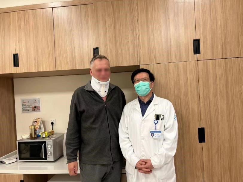 Hester说他早在2014年时就因为腰椎间盘突出症在德国韦德尔医院接受过手术。“当时为我手术的医生曾说,我的颈椎也有不可忽视的问题,不久的将来可能也同样需要手术治疗。” Hester表示,从2019年开始他的右手的就已感到麻木,起初是小指,后来逐渐加重,多个手指和整个手臂出现麻木,直至出现四肢麻木,行走不稳。他本想等下一次回德国后接受颈椎手术治疗,但突如其来的新冠疫情,加之工作繁忙,让他的治疗一拖再拖。直到2021年,他行走已经明显地不平稳,时常感觉自己仿佛踩在棉花上。“我甚至无法独自上下楼梯” ,这时他才开始真正着急起来。