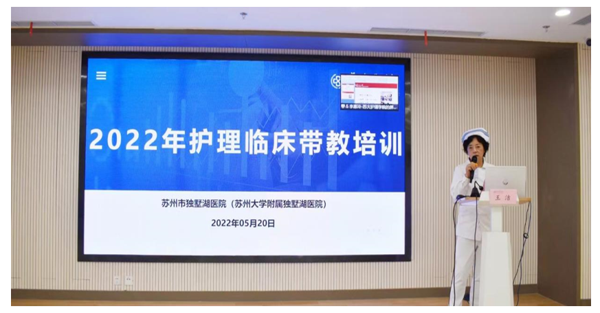 苏州市独墅湖医院作为苏州大学附属医院,是集医、教、研为一体的综合性教学医院。因此护理部也承担了护生临床实习、培养优秀临床护士的重任。5月20日,苏州大学附属独墅湖医院护理部举办了护理临床带教专题培训。本次培训特别邀请了苏州大学护理学院院长、苏州大学附属第一医院院长助理李惠玲教授进行线上授课。全体护士长及带教老师共50余人参加。