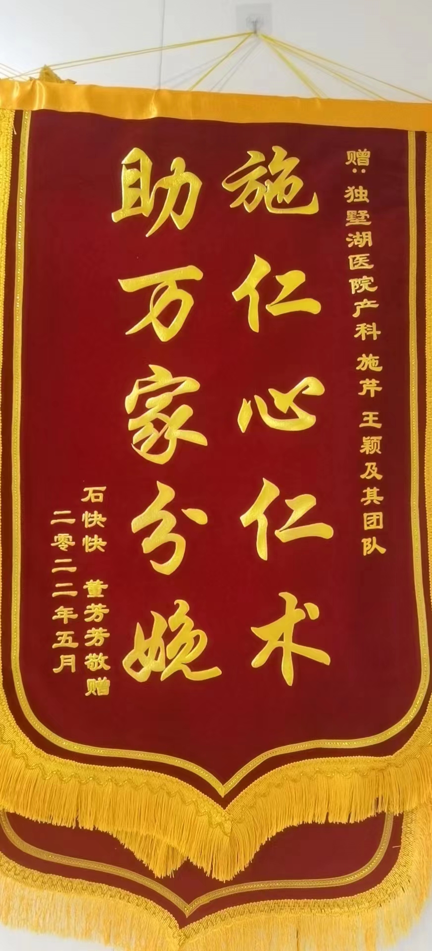 患者董女士赠送锦旗感谢我院妇产科施芹护士长、王颖护士及其团队