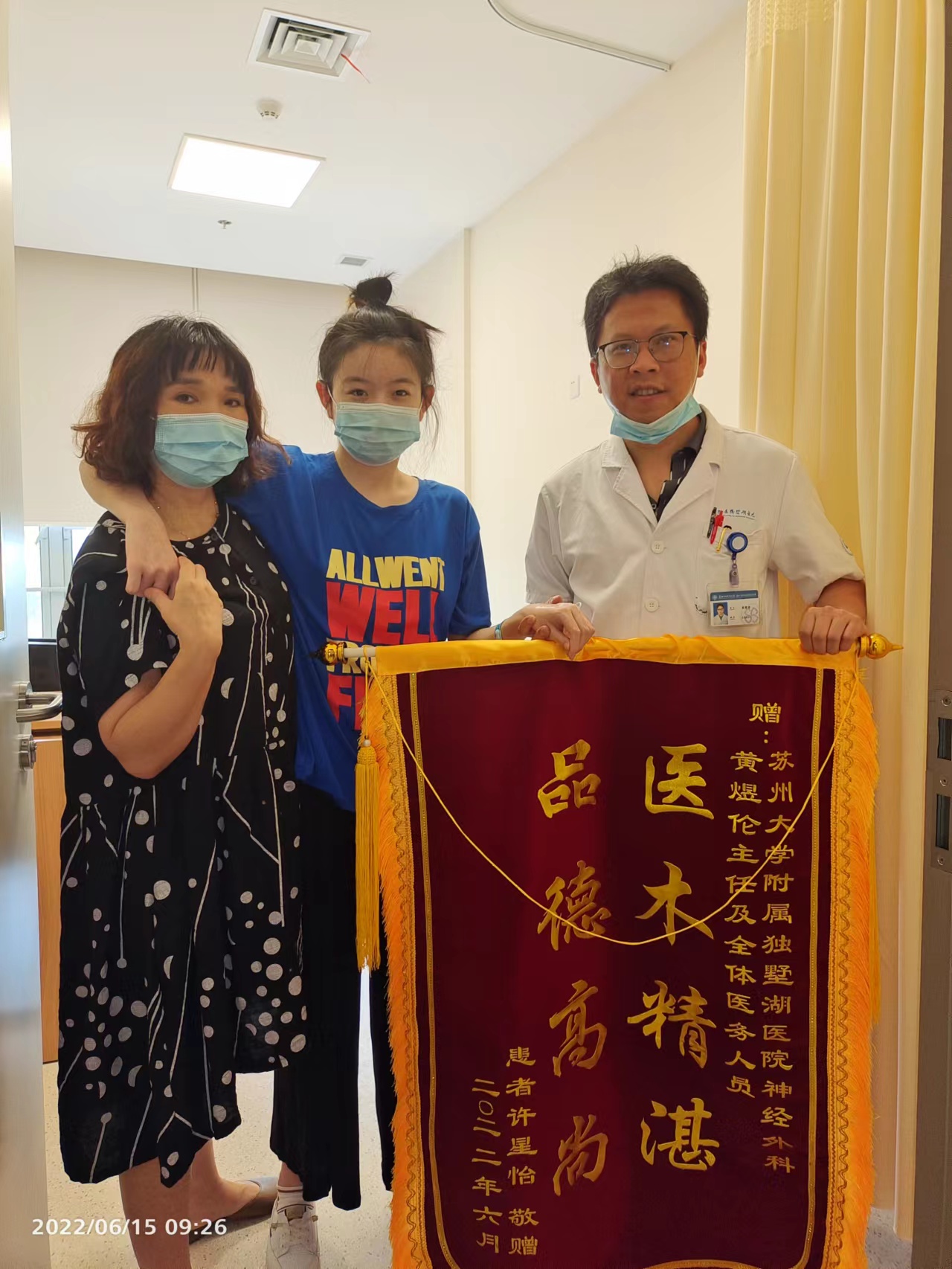 患者许女士赠送锦旗感谢我院神经外科黄煜伦主任及全体医护