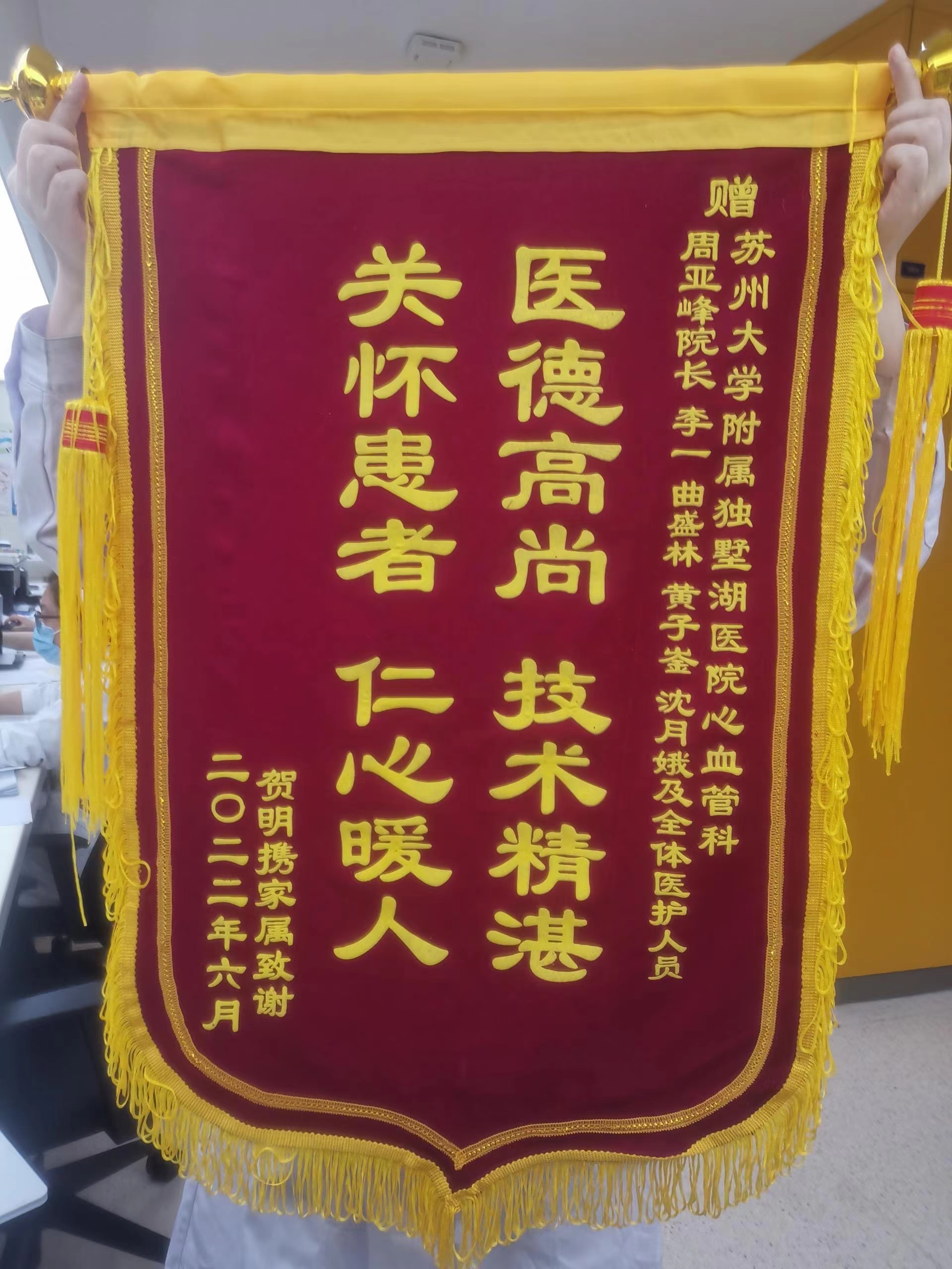 患者贺先生及家属赠送锦旗感谢我院心内科周亚峰副院长、李一、曲盛林、黄子鉴医生、沈月娥护士及全体医护