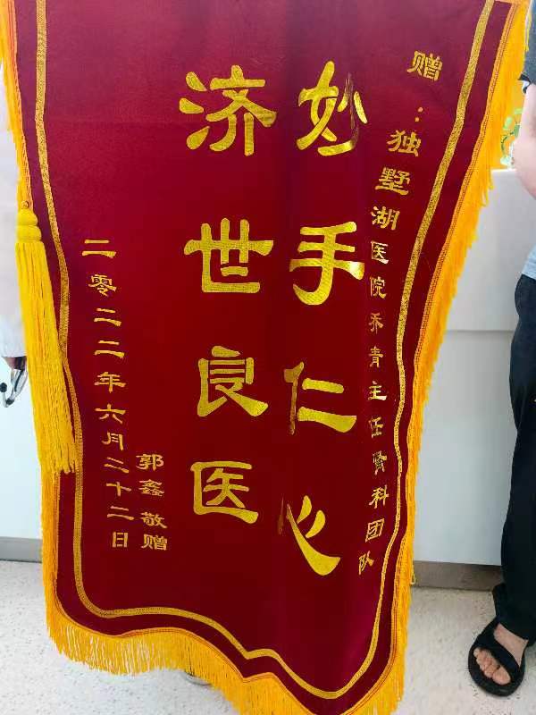 患者郭先生赠送锦旗感谢我院肾内科乔青主任团队