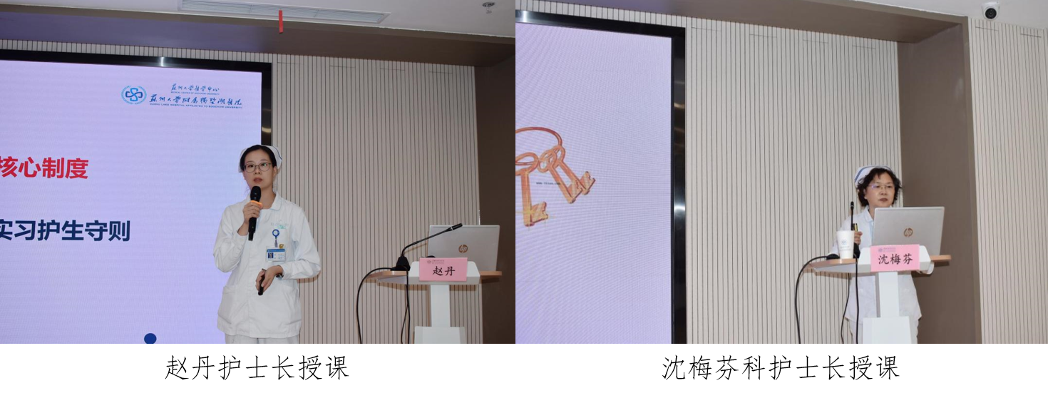 护理部赵丹护士长讲授了八大护理核心制度和实习护生安全管理要求。明确了护生的基本素质、权利与义务等,结合多年临床工作及带教经验细述了临床护生管理中的注意事项、实习过程中可能面临的问题及其解决方法。良好的护患沟通有助于了解患者身心状况,沈梅芬科护士长以《护患沟通技巧》为题,从真实案例入手,充分展现了临床的多面性以及护理工作的细腻,护生们纷纷表示受益匪浅。
