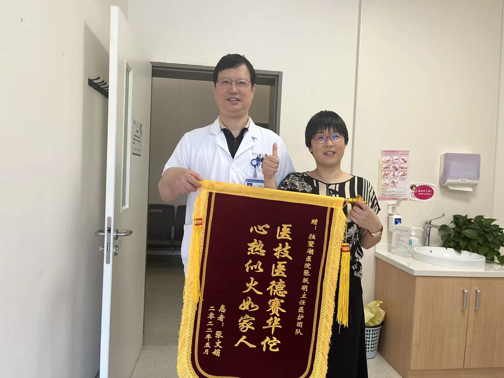 患者张女士赠送锦旗感谢我院张跃明主任医护团队