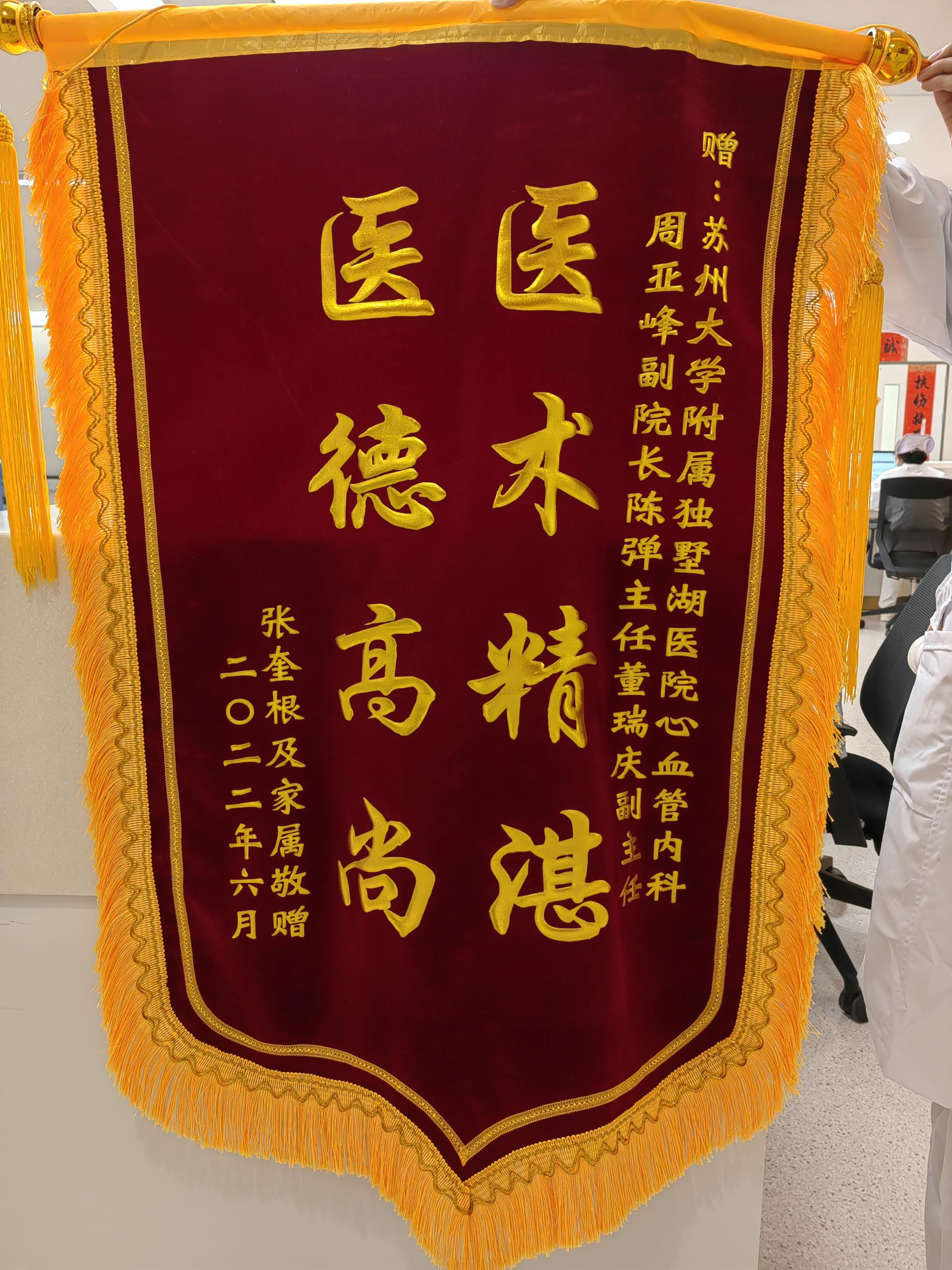 患者张先生及家属赠送锦旗感谢我院心内科周亚峰副院长、陈弹主任、董瑞庆医生