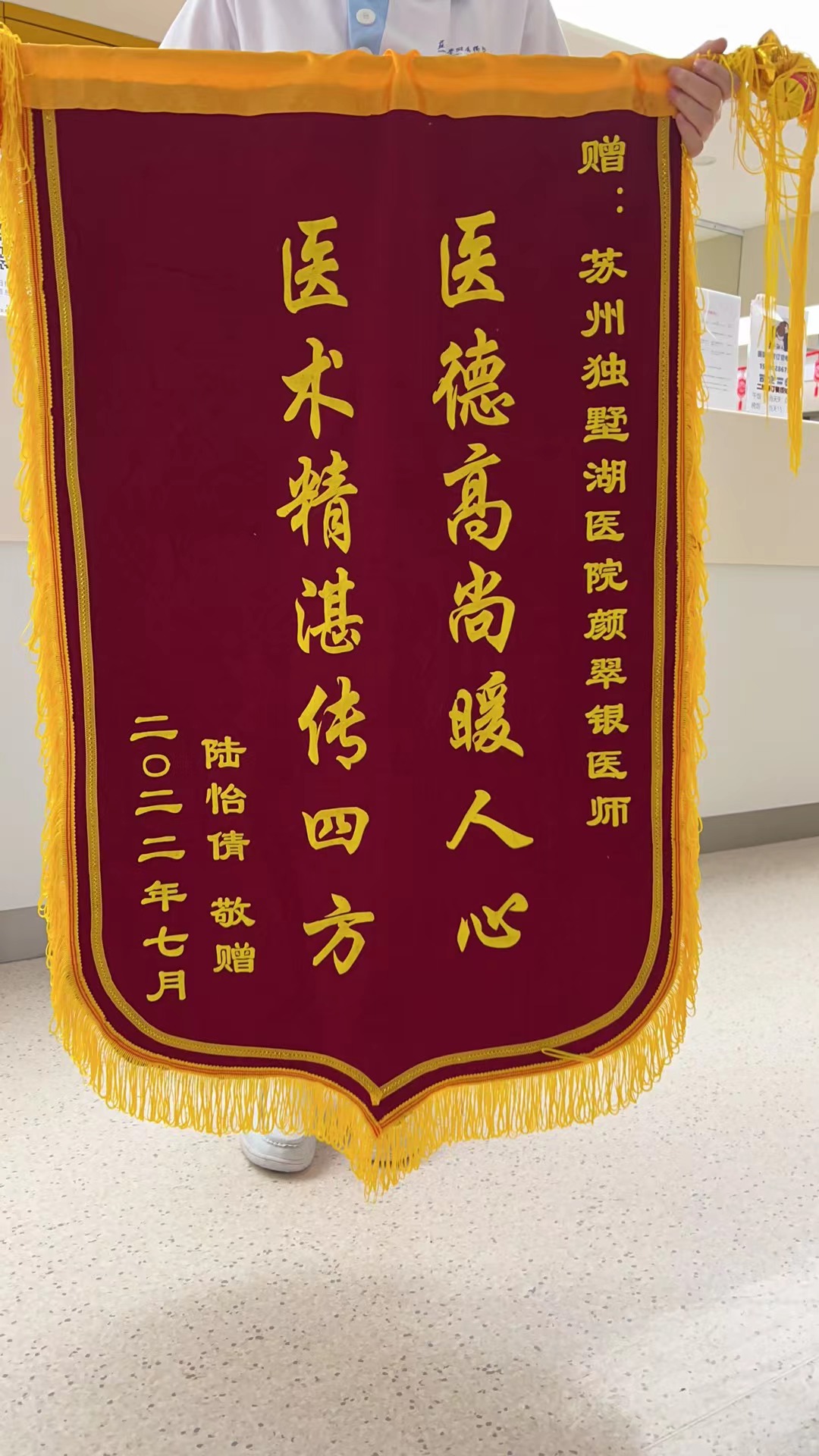 患者陆女士赠送锦旗感谢我院妇产科颜翆银医生