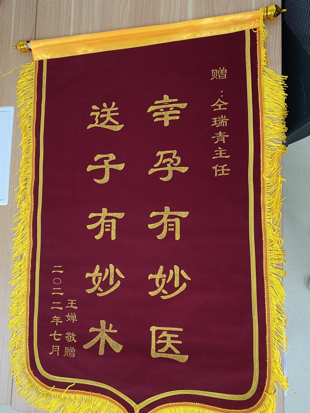 患者王女士赠送锦旗感谢我院生殖医学中心仝瑞青医生