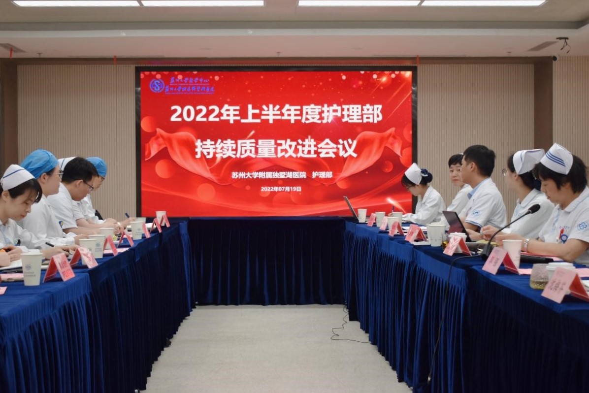 7月19日,苏州大学附属独墅湖医院护理部召开2022年上半年度护理质量控制暨持续质量改进会议。会议由护理部王洁主任主持,由苏州大学附属独墅湖医院分管护理工作的院领导郭强副院长出席并讲话,各质控组、专科组组长参加。