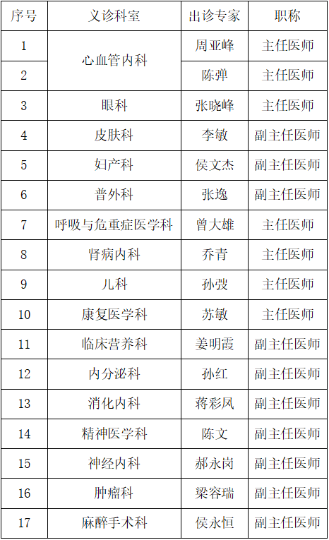 三、义诊科室及出诊专家安排