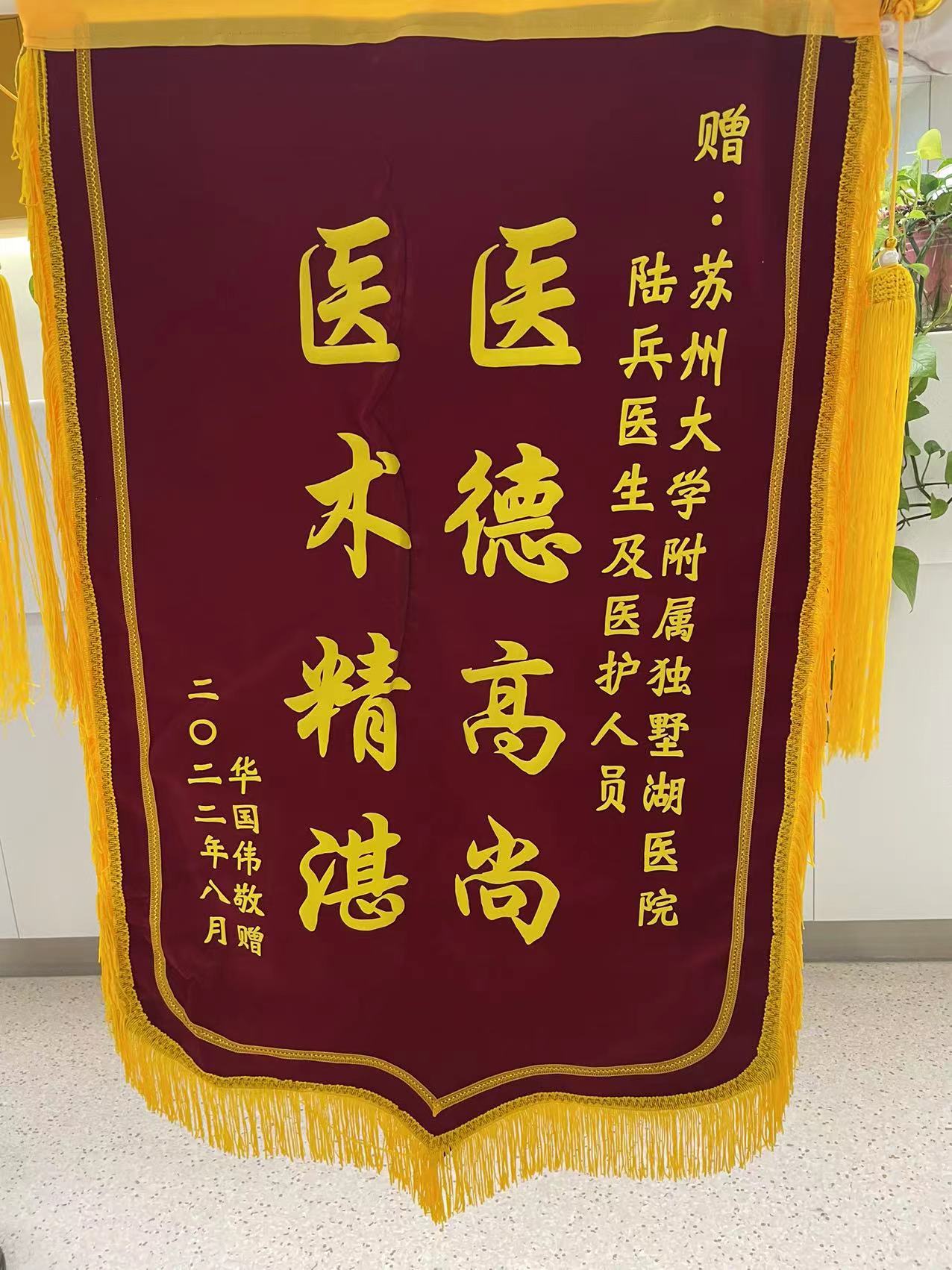 患者华先生赠送锦旗感谢我院泌尿外科陆兵副主任医师