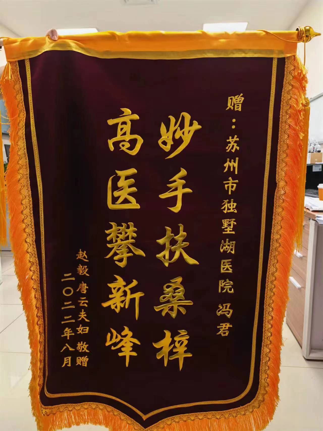 患者赵、唐夫妇赠送锦旗感谢我院妇产科冯君医生