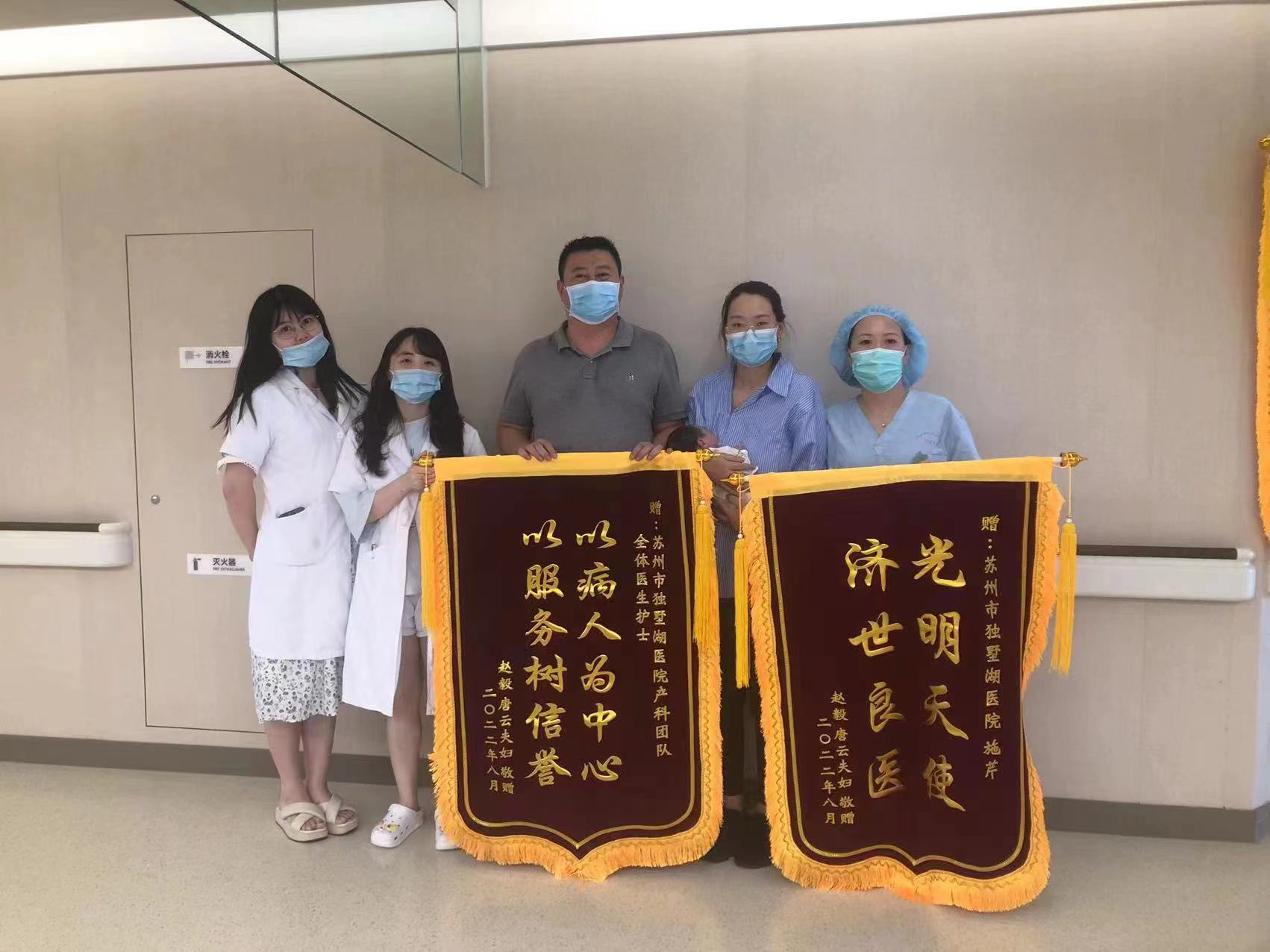 患者赵、唐夫妇赠送锦旗感谢我院妇产科施芹护士长