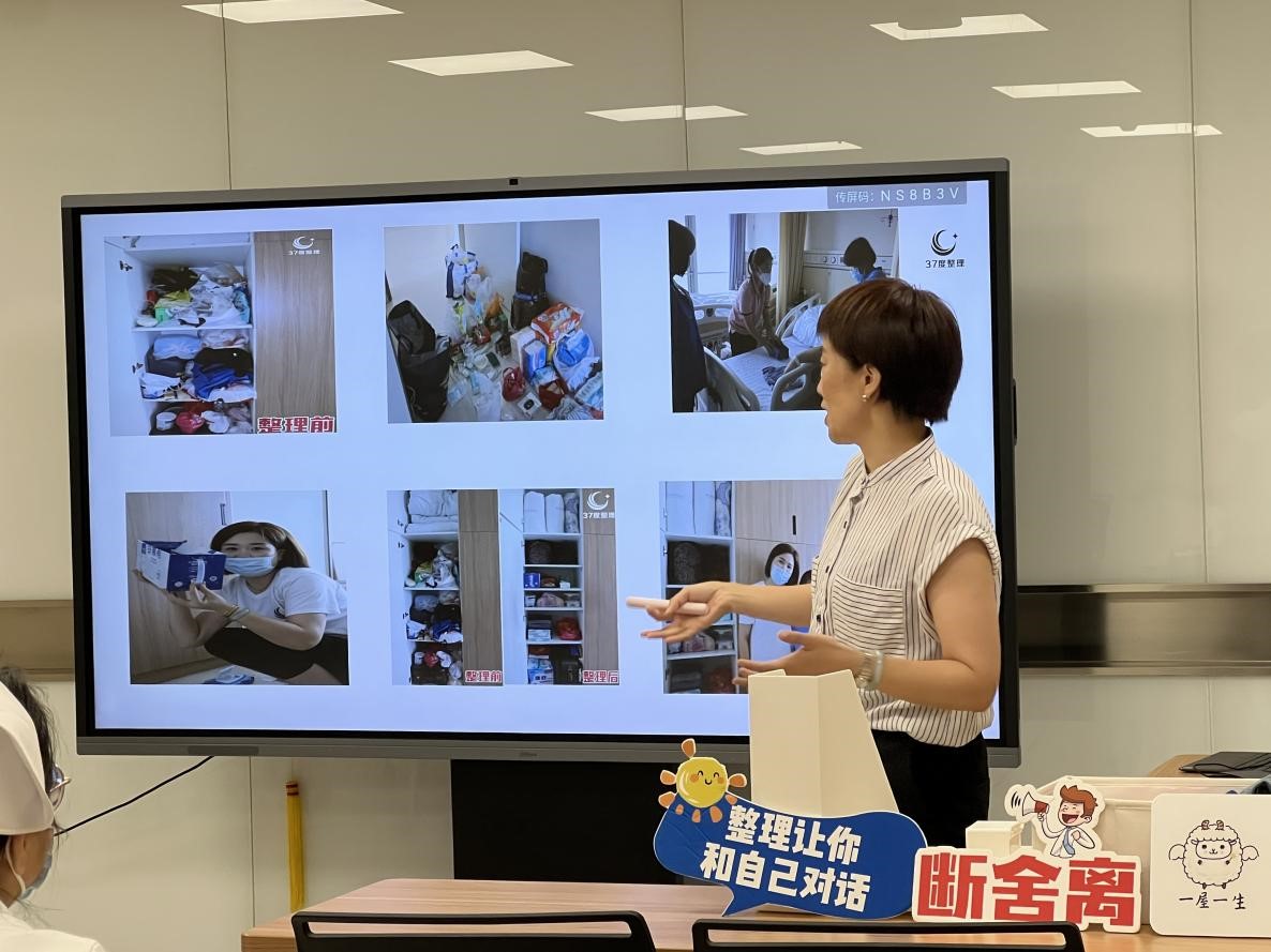 活动中,来自中华整理收纳协会的冯静宜老师以日本作家山下英子撰写的《断舍离》一书作为切入点,从收纳整理的起源讲起,介绍了科学收纳的五个步骤,并重点讲解了从现代衣橱到理想衣橱需要的四点“道法术器”。她通过分享一些真实的收纳整理前后图片对比,让大家直观地看到合理使用家庭空间能够让杂乱无章的居所焕然一新。