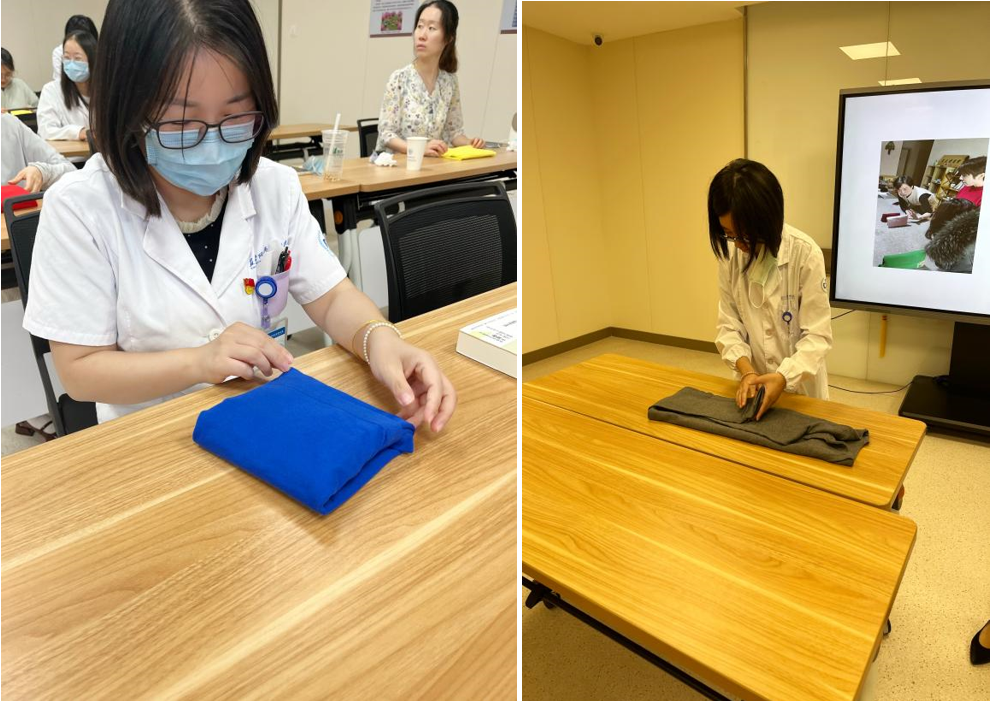 此外,冯静宜老师和刘婷老师带领书社成员们进行包括衣物折叠、床笠折叠、贴身衣物折叠等收纳整理的实操演练,让书社成员们学到不少实用、科学、合理的收纳整理小技巧。