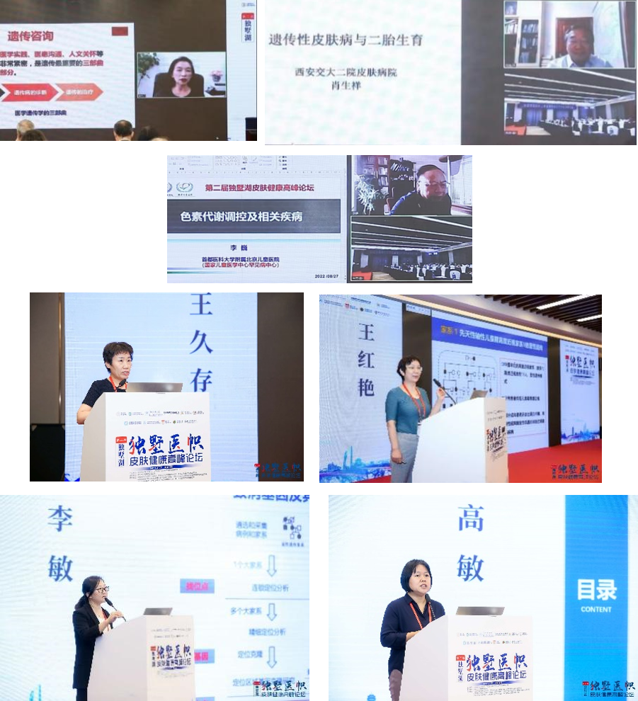 8月27日下午的罕见病遗传咨询专家论坛由同济大学医学院医学遗传学系主任陈建军教授、上海医学会皮肤性病学分会候任主任委员潘萌教授、苏州大学附属第一医院皮肤科科主任杨子良教授及苏州大学附属第一医院胎儿医学研究所所长孙淼教授主持。苏州大学附属独墅湖医院皮肤科主任李敏教授围绕“罕见皮肤病从难以诊断到可诊断”分享了各类皮肤罕见遗传病及国内学者在相关疾病致病基因鉴定方面做出的卓越贡献、回顾了国内相关研究的不足并对未来进行展望。