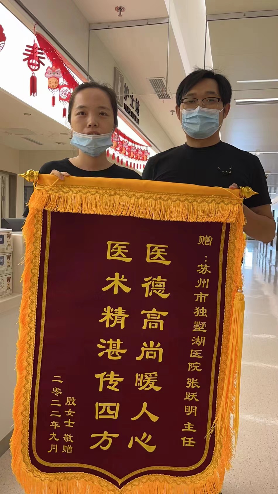 患者殷女士赠送锦旗感谢我院妇产科张跃明主任