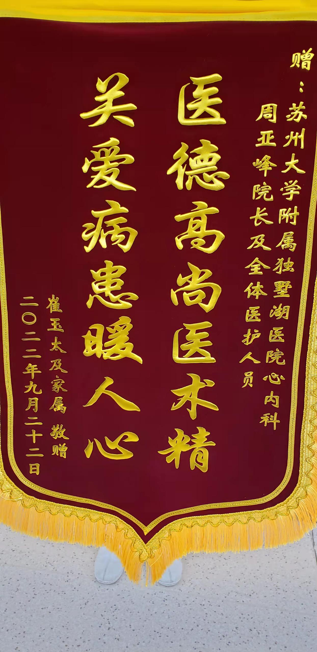 患者崔先生及家属赠送锦旗感谢我院心内科周亚峰副院长及全体医护