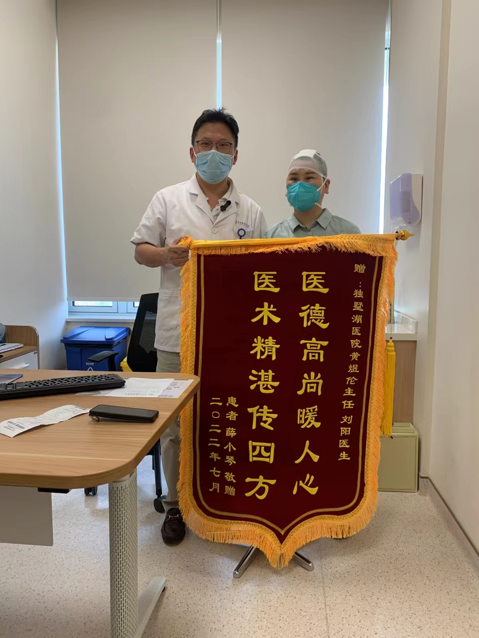 患者薛女士赠送锦旗感谢我院神经外科黄煜伦主任、刘阳医生