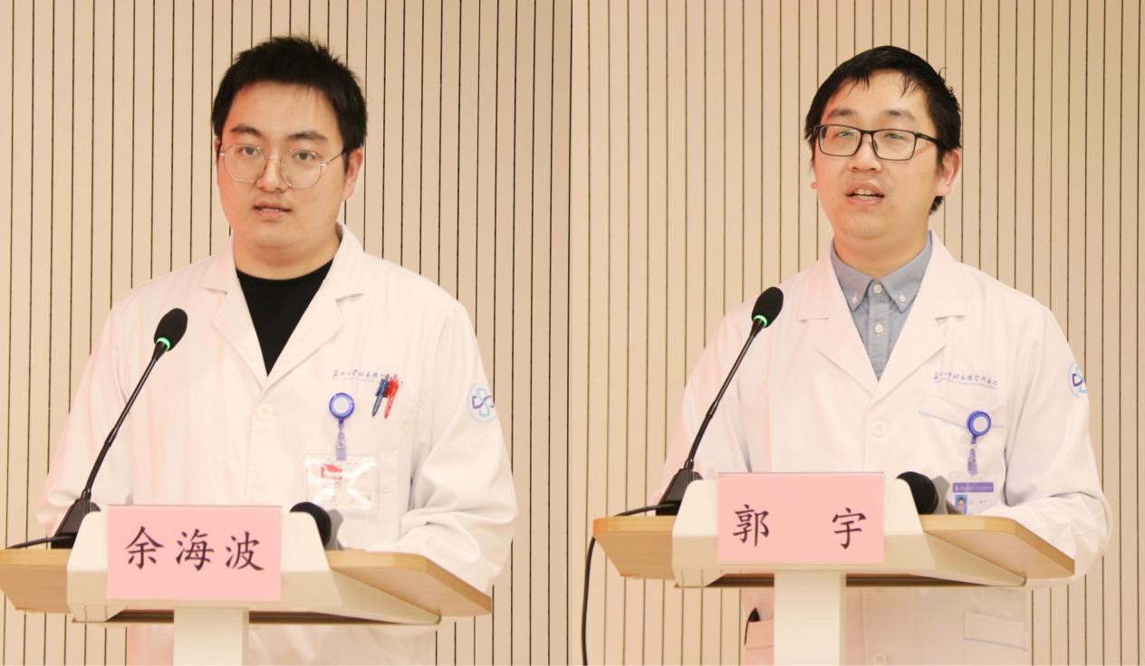 新职工代表余海波、郭宇分别代表医生、护士发言。余海波表示,作为一名医学生要始终牢记以病人为中心,坚守事业信念,遵守职业道德,并提出了“脚踏实地,勤奋好学”“学以致用,学以实用”“遵守纪律,严格要求”三点自我要求。郭宇认为护士的职责是用爱心和责任构筑生命的防线,要懂得“天下大事,必作于细,天下大事,必作于易”,在平凡的工作中追求不平凡。