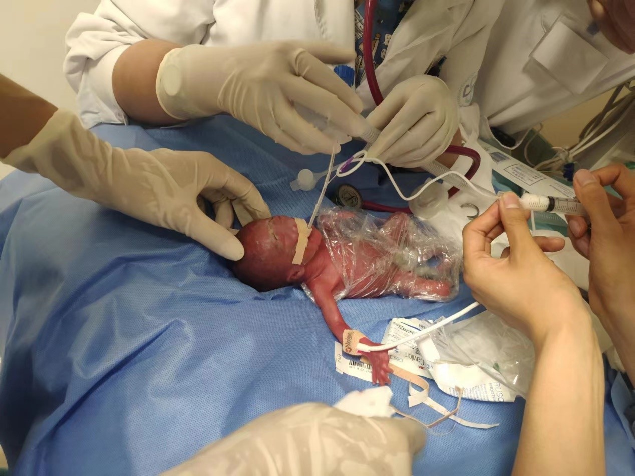 陈女士夫妻二人绝不放弃的信念也坚定了张跃明主任为其再次一搏的决心,为了抢救这个幼小的新生命,他做了充足的准备。张主任联系到了儿童医院新生儿科孙斌主任,派专人在产房准备好抢救药品做好对接工作。陈女士的环扎线一拆,很快娩出一活女婴,重530g,评8分,插管、肺表面活性物质应用等全部到位。随后将新生儿平稳地转至儿童医院。在儿童医院经过3个多月的救治后体重达6斤,现已安全出院。