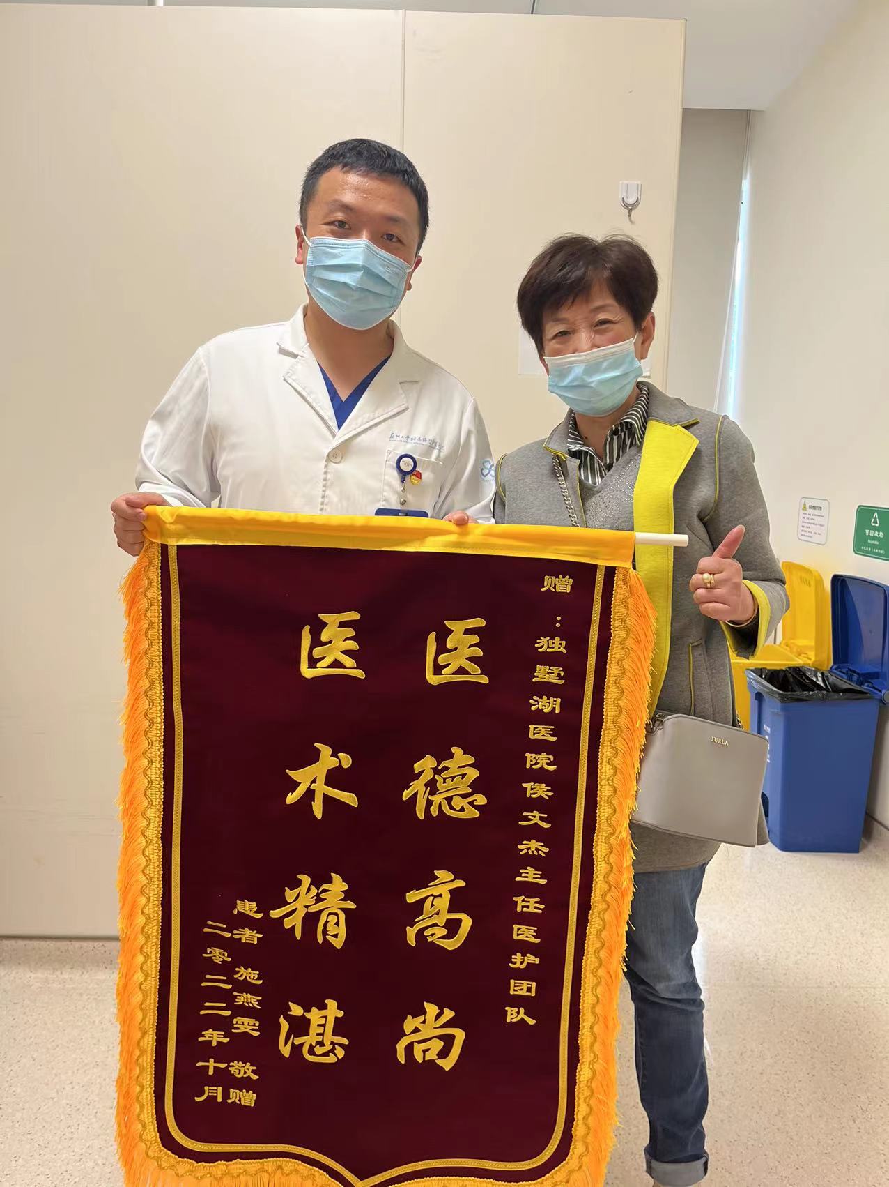 患者施女士赠送锦旗感谢我院妇产科侯文杰副主任医护团队