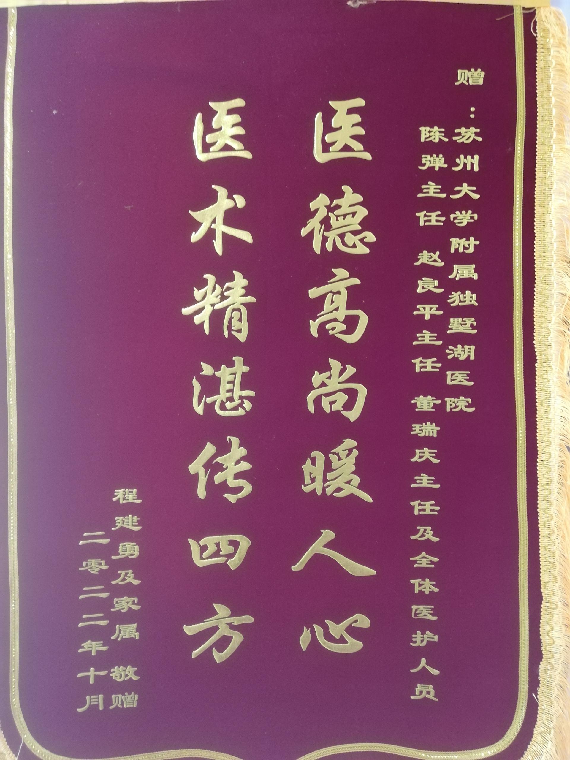 患者程先生及家属赠送锦旗感谢我院心内科陈弹主任、赵良平副主任医师、董瑞庆副主任医师