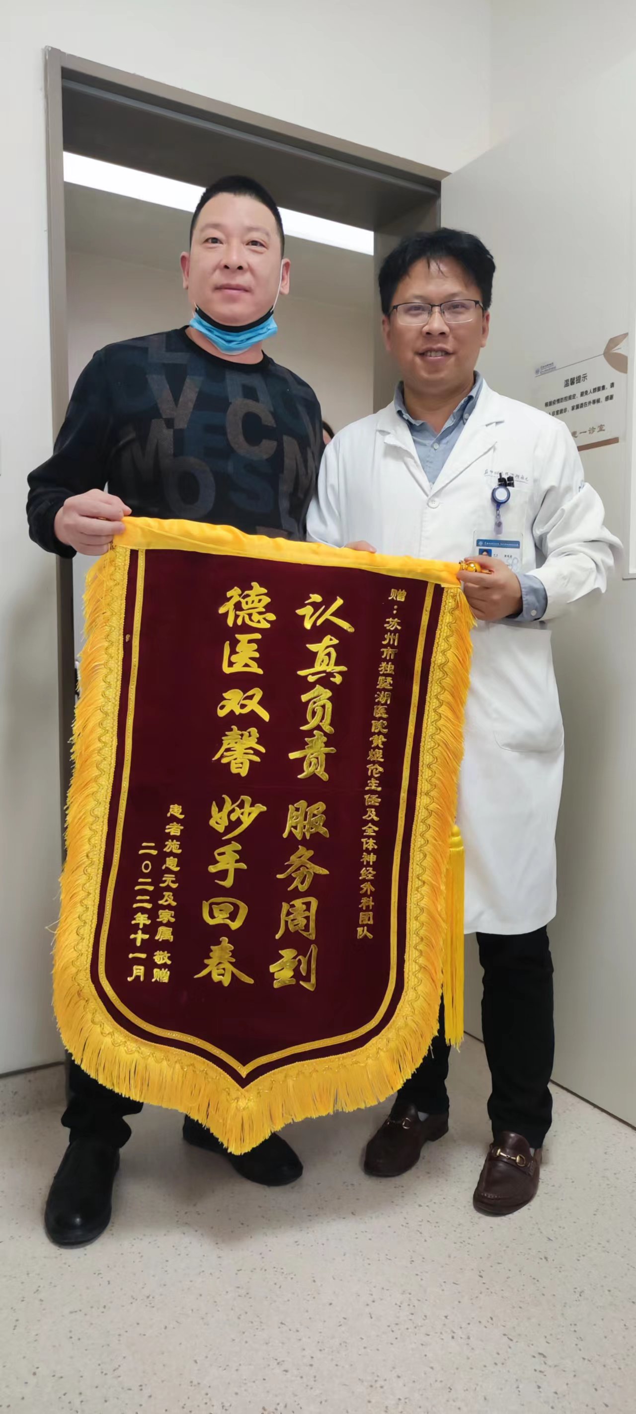 患者施先生赠送锦旗感谢我院神经外科黄煜伦主任团队
