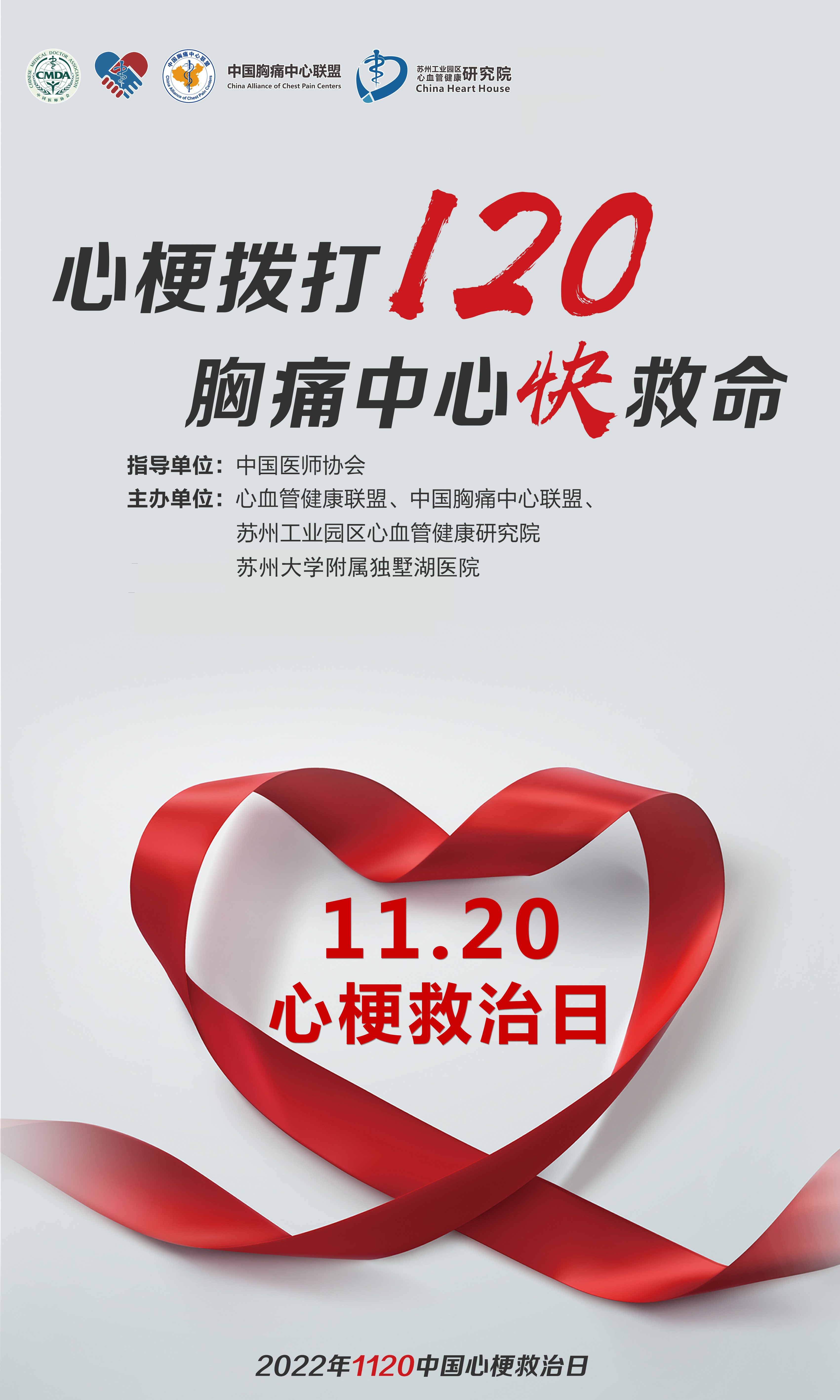 11月20日是“心梗救治日”。“1120”寓意有两个:一是“有胸痛,我要拨打120”;二是“心梗救治,争取黄金120分钟”。为提高公众防范意识,普及急性心梗规范化救治流程,让更多人重视心肌梗死救治的重要性,苏州大学附属独墅湖医院心血管内科拟于2022年11月18日举办“中国11.20心梗救治日”义诊活动。