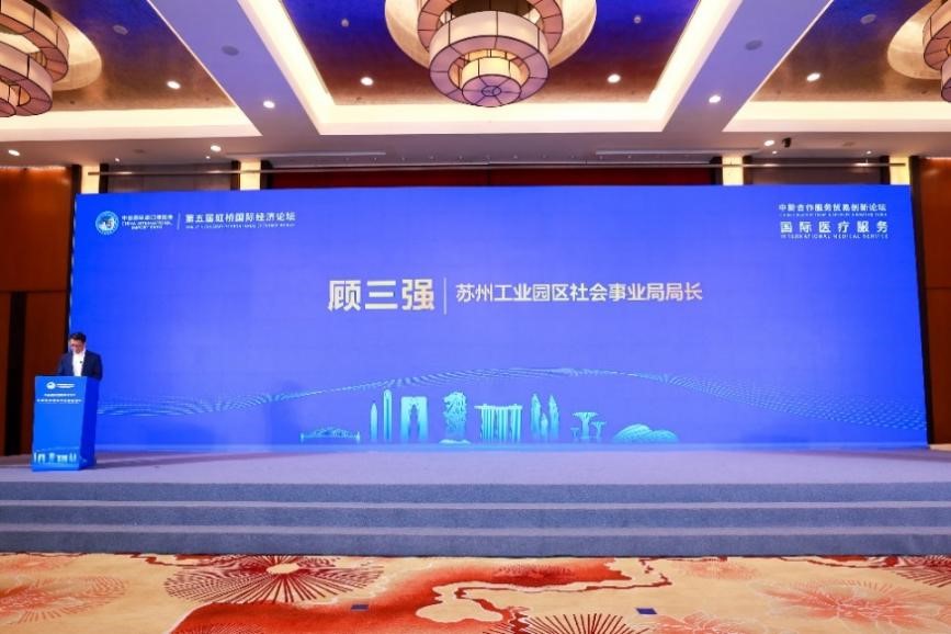 顾三强局长代表苏州工业园区社会事业局向参加论坛的各位嘉宾表示欢迎,他强调社会事业局将支持以独墅湖医院为代表的园区医疗机构开展国际医疗服务升级,积极加强境外医师交流合作,推进商业保险与医疗机构合作对接;做好支持国际医疗服务医保配套政策的落地实施,推进商业健康保险和基本医疗保险有效衔接;加强政策创新力度,促进国际医疗服务可持续发展。