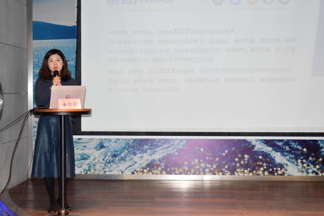 最后,护理部王洁主任依托数据,详细总结了护理部本年度在人力资源管理、疫情防控工作、专科护理内涵、优质护理服务、护理质量管理、学科管理等方面的工作情况,充分展现了本年度的工作成绩与亮点,并结合国家、省、市“护理事业十四五发展规划”,及医院当前护理学科发展存在的问题,对2023年度护理部工作进行安排。