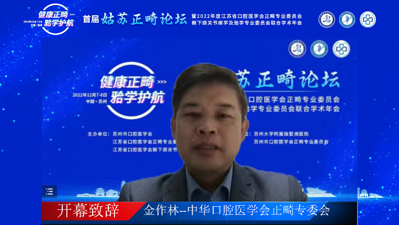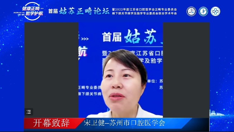 苏州大学附属独墅湖医院党委书记、院长侯建全致辞,对“首届姑苏论坛”的顺利开展表示祝贺,同时,对江苏省口腔医学会颞下颌关节病学及𬌗学专业委员会主任委员、苏州市口腔医学会正畸专业委员会主任委员张卫兵教授为提高苏州市口腔正畸及颞下颌关节病学临床诊疗水平做出的工作表示感谢,并预祝参会人员学有所得、学有所获。