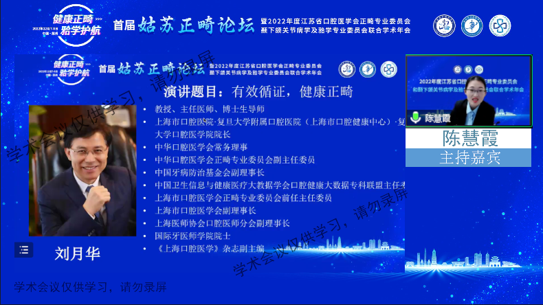 学术年会就“健康正畸·𬌗学护航”展开主题研讨。大会邀请了王林教授,金作林教授,房兵教授,刘月华教授,白丁教授,傅开元教授,严斌教授,张卫兵教授,Chung How kau教授,季骏主任,王震东主任,周薇娜主任,王育新主任等知名专家作专题学术报告。专家们的报告深入浅出地阐述了正畸和颞下颌关节紊乱病的关系,为广大正畸医生理清思路、掌握知识、找准方向。