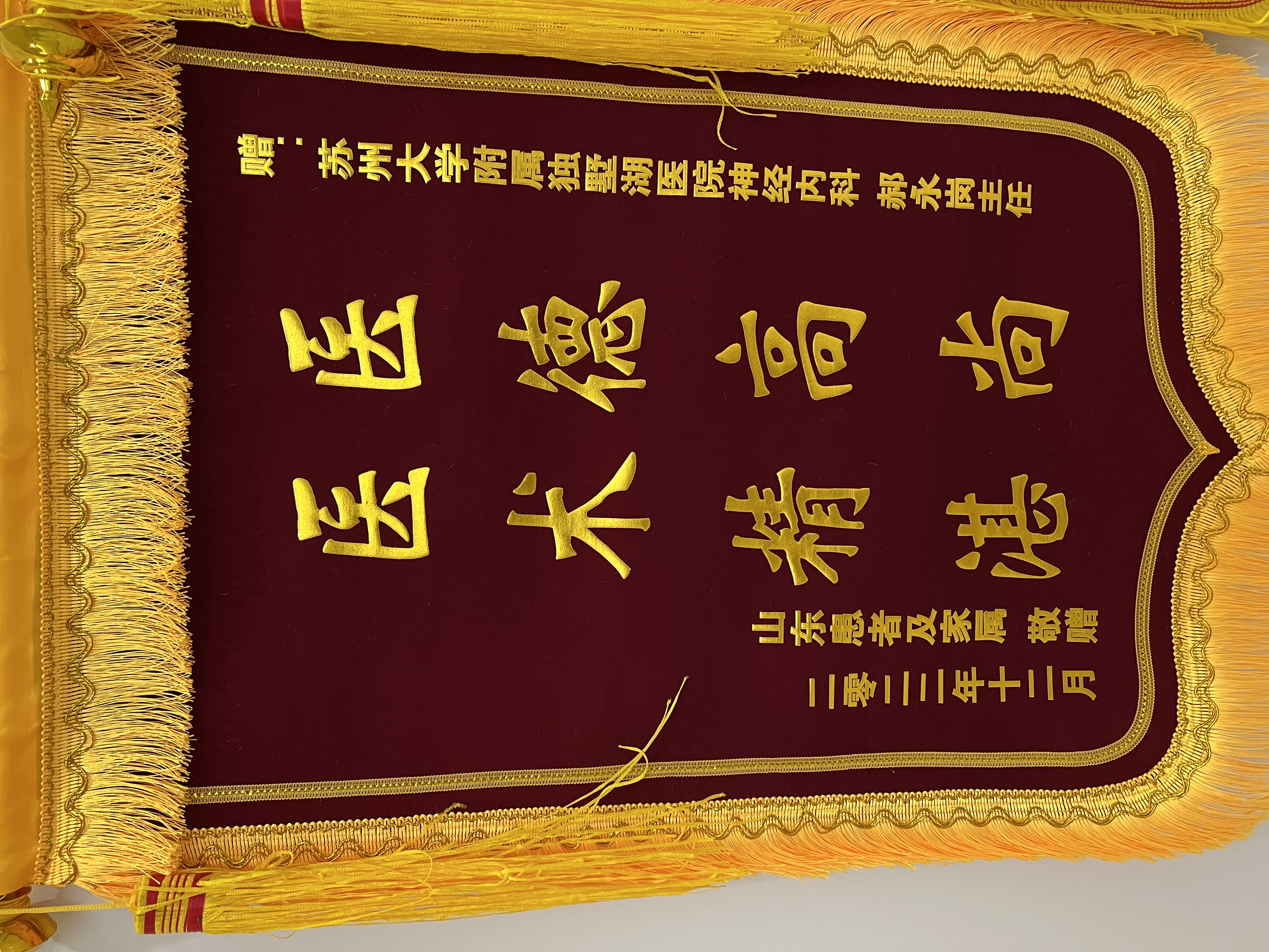 山东患者赠送锦旗感谢我院神经内科郝永岗副主任