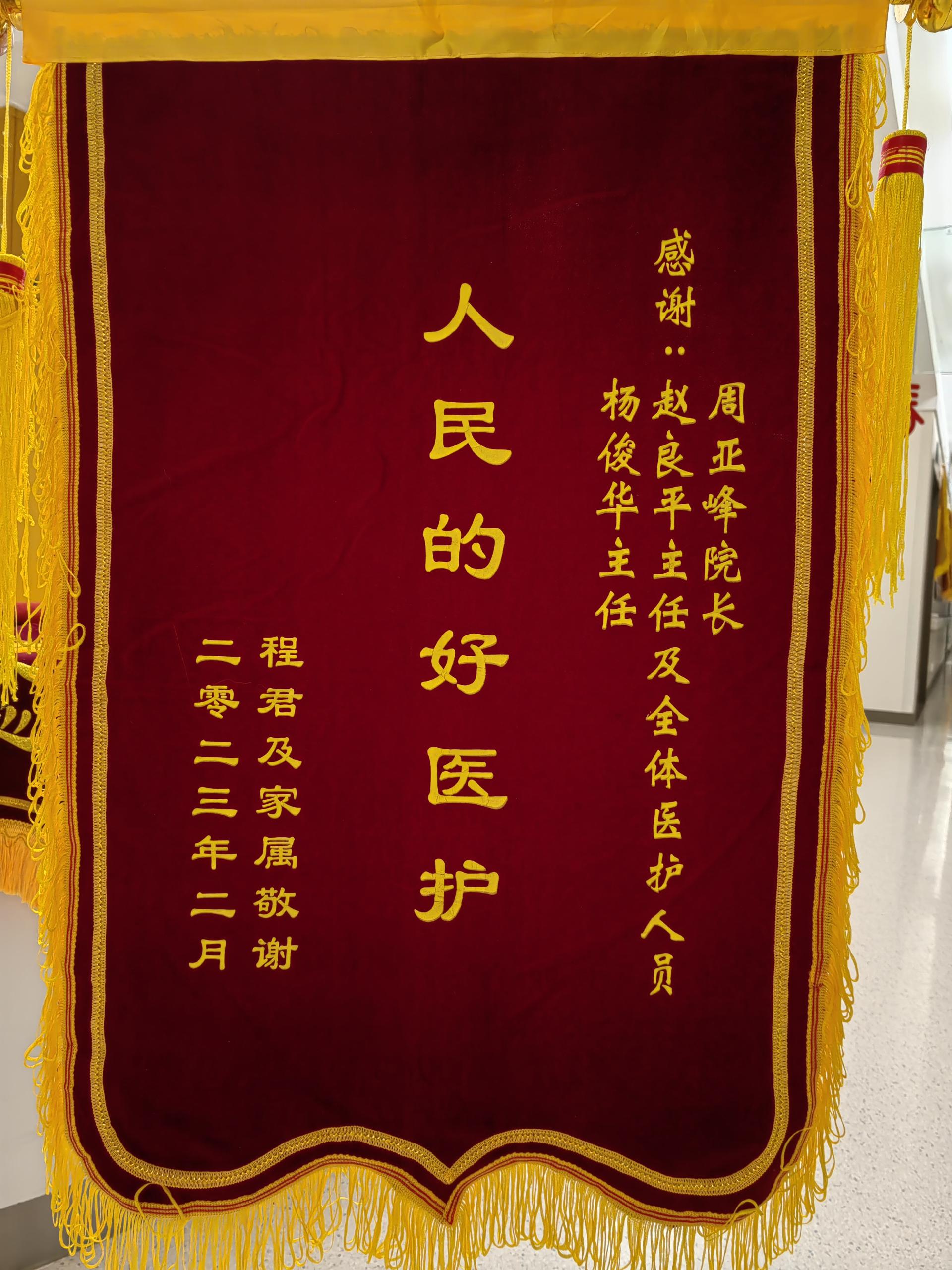 患者程女士赠送锦旗感谢我院周亚峰副院长、心内科赵良平副主任医师、超声科杨俊华副主任及全体医护