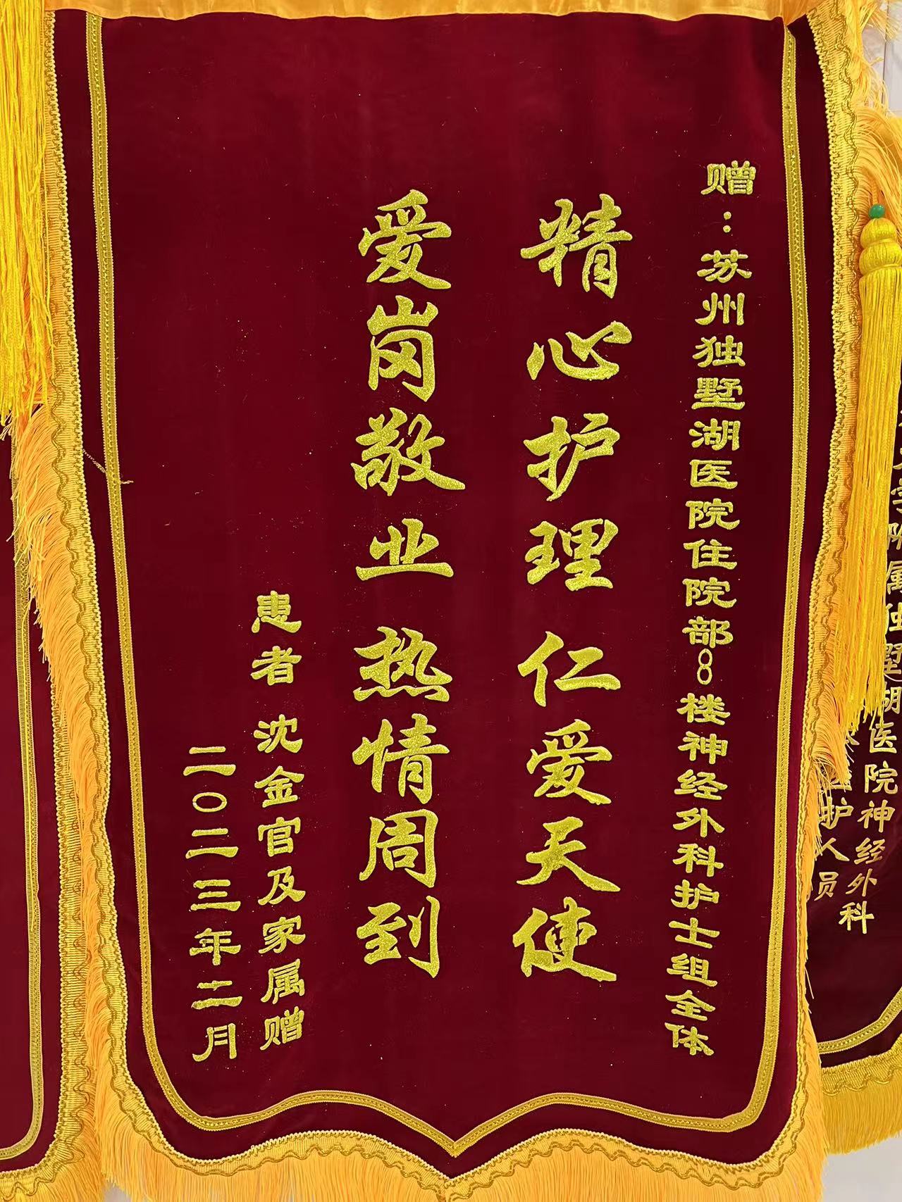 患者沈先生赠送锦旗感谢我院神经外科全体护士