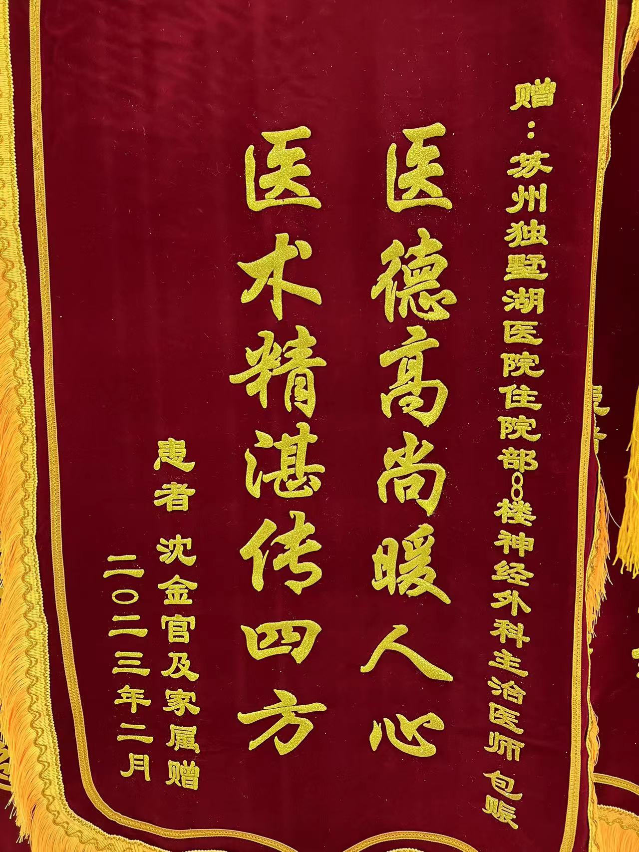 患者沈先生赠送锦旗感谢我院神经外科包赈医生
