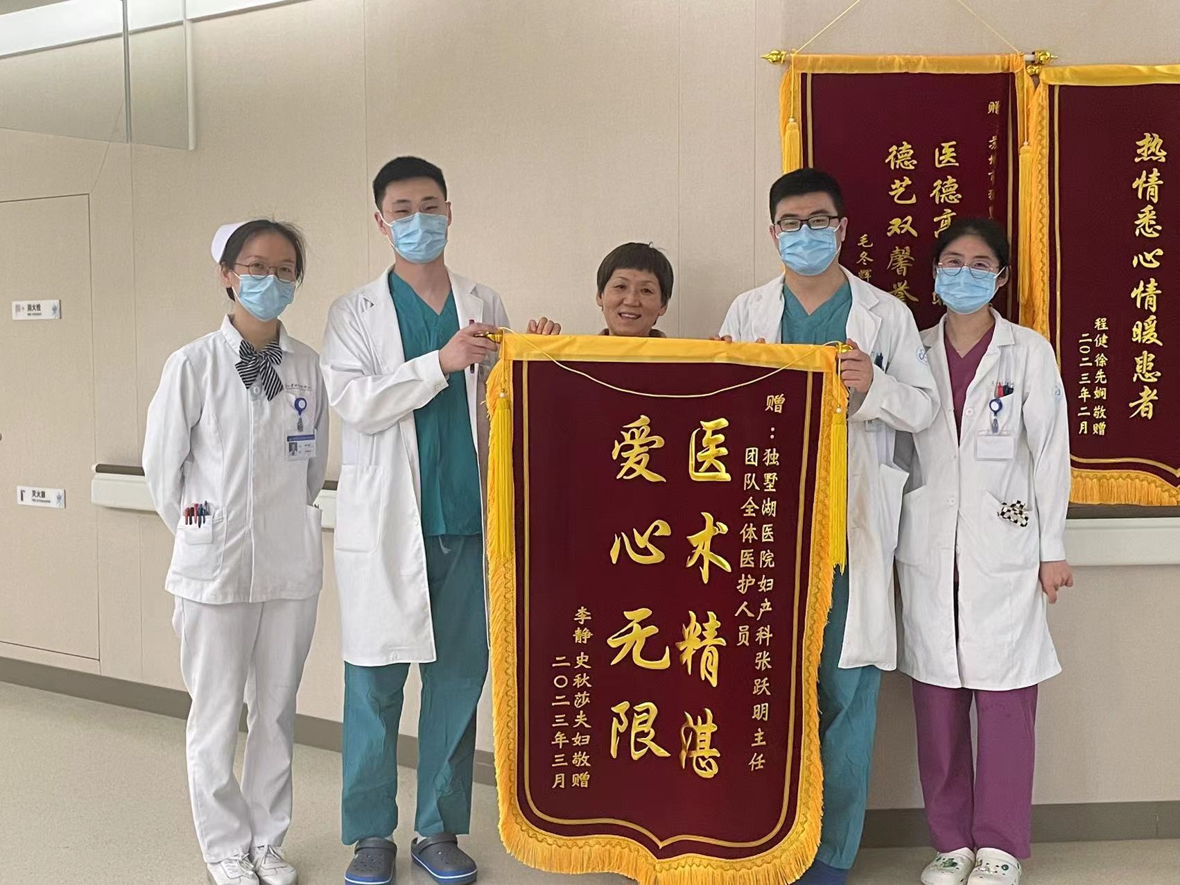 患者李女士夫妇赠送锦旗感谢我院妇产科张跃明主任团队
