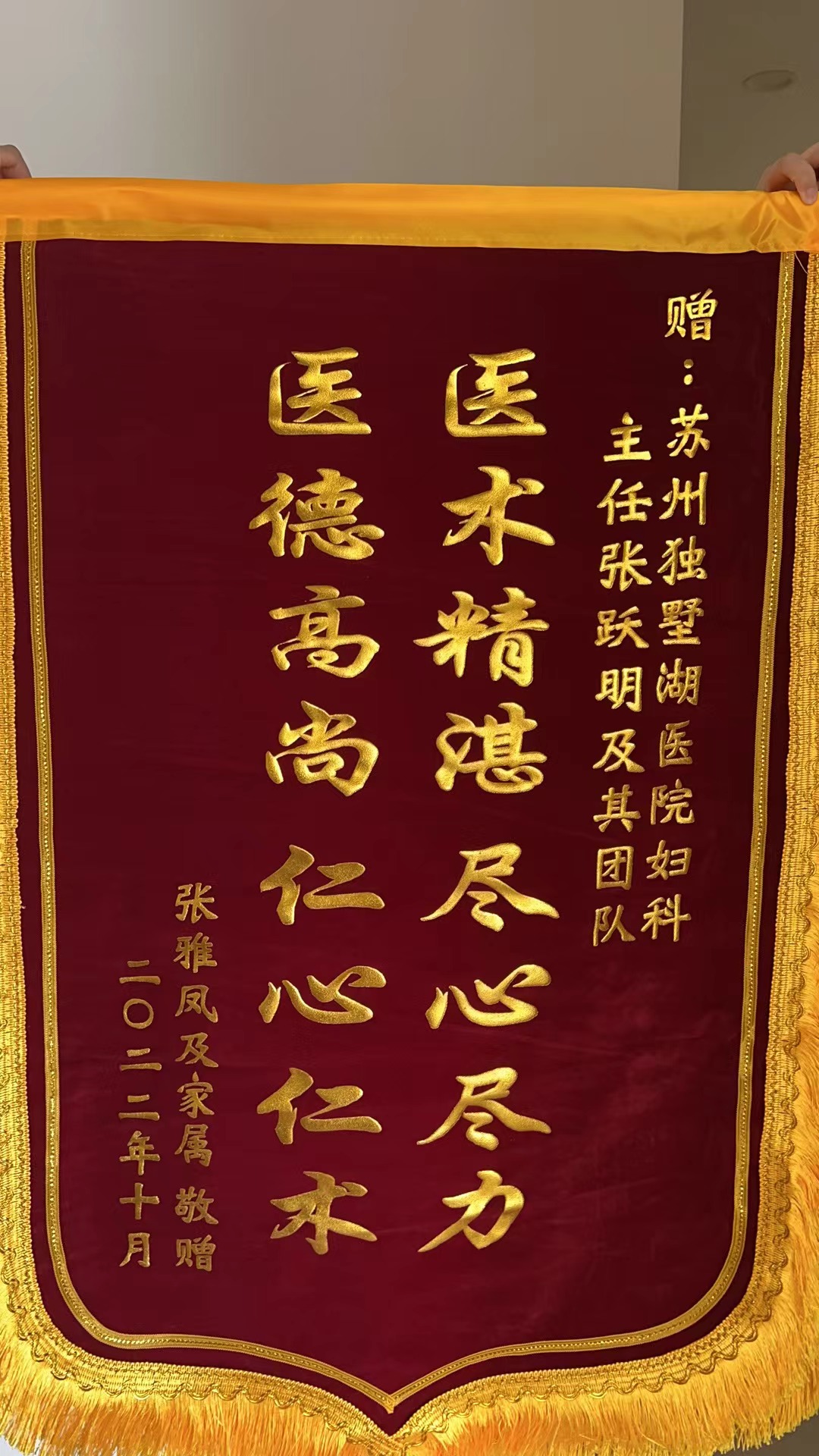 患者张女士及家属赠送锦旗感谢我院妇产科张跃明主任及其团队